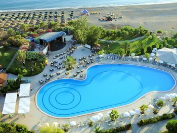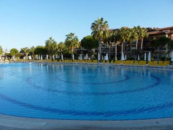 3) Неплохой бассейн, лежаки тоже ухоженные, занимать надо с утра, так как из приезжих большинство - русские и поляки. Занимают с самого утра, перед завтраком. И полотенца лежат весь день, даже если они больше не придут. Также возле бассейна ходит худой турок лет 50,приносит вам воду или двигает зонтик, даже если вам не надо,улыбается, ожидая денег. Это очень раздражает.