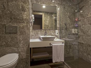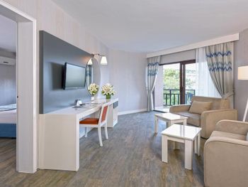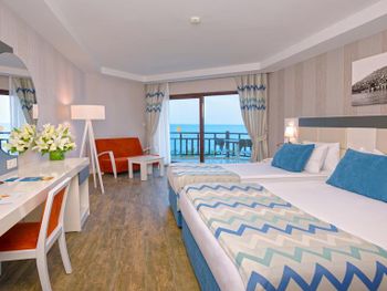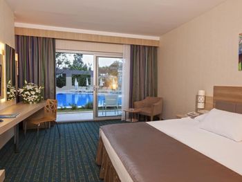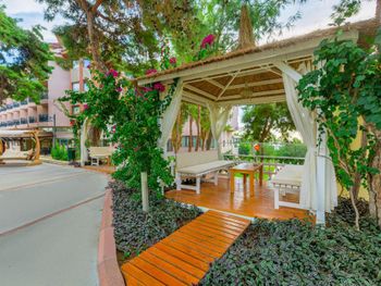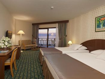 Отель 4*, но никак не 5*. Выбор еды совершенно небольшой, фреш, мороженное все платное. По питанию совсем ничего хорошего сказать не могу, покушать есть что, но не густо. Даже выпечка подогретая, с каких то коробок доставали и в жарочных шкафах грели, ну это уже совсем. Пироженные, торты без фанатизма одно и тоже. Часы приема пищи короткие и люди как сумашедшие летят в ресторан, обед с 12-30 до 14-00 это нормально? В это же время типа бесплатное мороженное, но не раз не дали бесплатно. Гезлеме совершенно ни то, которым славится Турция, обычно сидит женщина и на твоих глазах его делает, с пылу с жару ты кушаешь. Смены белья так и не дождались, как раньше зуб.пасты нет, гель для душа он же и шампунь, залитый в общую емкость. Вход в море ужасный, первые дни оставались без ног. Интернет платный в 21 веке то, все уважающие себя отели в лобби делают интернет бесплатный, но тут в конференц зале где то в подземелье, где он совсем никакой. Карточку в номер на 4-х дают одну, ужасно не удобно. Полотенца в залог, чайник, утюг в залог, зачем???? Зачем людям на отдыхе создавать такую бумажную суету????? Больше бы мне не хотелось туда вернуться.