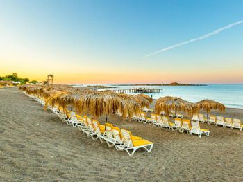 2) Море 😍 хороший заход, длинная береговая линия. Много лежаков, персонал ухаживает, чтобы стояли на местах с утра. Первая и вторая линия лежаков заняты с раннего утра уже полотенцами. В конце можно ещё найти свободные.