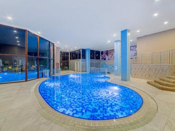 4. Большой и чистый основной бассейн, адекватная глубина, никому не тесно, вода теплая. Также есть отдельный бассейн с горками и маленький крытый бассейн под спа. Есть ещё лягушатник с маленькой горкой, но там вода ооооочень холодная, т.к. бассейн закрыт от солнца тентом.