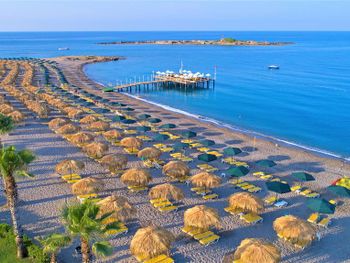 С лежаками проблема и у бассейна и у моря, их не хватает, если не занимать до 8-9 утра, но это можно сказать про многие отели в Турции.