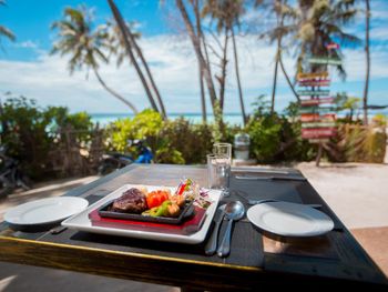 В собственном ресторане гостевого дома, расположенном напротив пляжа Бикини, подают блюда местной и западной кухни. Из ресторана открывается вид на голубую лагуну.