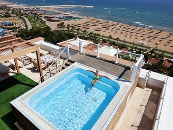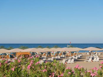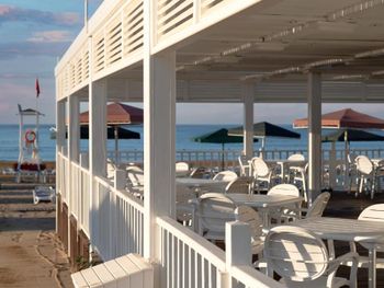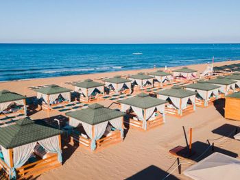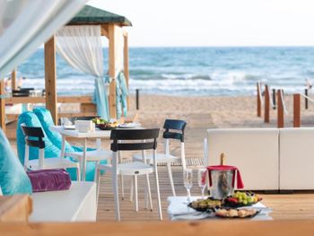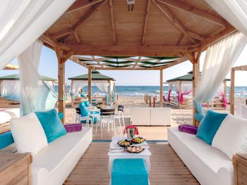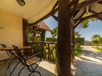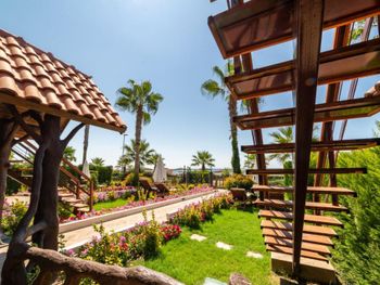 Отдых на территории бассейна был великолепен. Лежаки расположены среди хвойных деревьев. Не далеко есть бар. До моря достаточно близко. Не спеша 5 минут максимум. Пляж отличный, песок чистый.