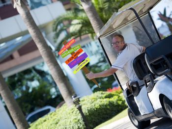 Вызвали гольфкар,чтобы доехать до основного корпуса, ответ: машин нет. Мы говорим: вещи довезти до машины.- А ну тогда ладно.( к вопросу про отношение).