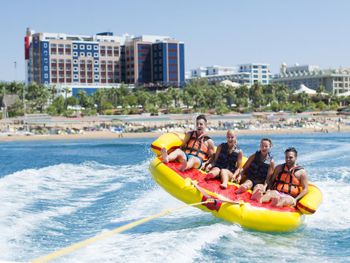 Отдыхали в августе 2021 года. Выбирали отель через Booking на основе высокого рейтинга. Фактически отель не тянет на 5 звёзд, номерной фонд старый, мебель, полы, оборудование в санузлах. Хамам работает до 19.00 часов, детские горки в бассейне только для малышей, так называемый Аквапарк в соседнем отеле этой же сети Kamelya работаете вовсе до 17.00 часов, при этом с этих водяных горок плюхаешься в бассейн глубиной 140 см, что не совсем безопасно. Большинство детских развлечений платные. Однообразная еда. Честно говоря, за эти деньги были конкурентные предложения по отелям.