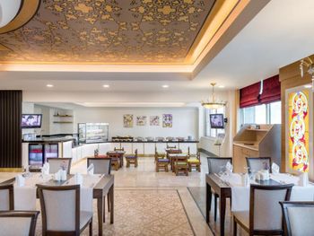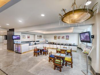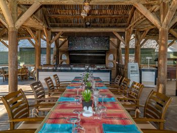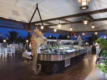 В главном ресторане сервируется завтрак, обед и ужин по системе «шведский стол». Гостям предлагают фирменные блюда интернациональной и местной кухни. В баре подают разнообразные алкогольные и безалкогольные напитки, закуски и коктейли.