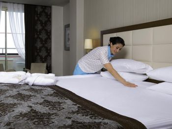 Мы уже более года путешествуем по миру, очередной точкой маршрута была Анталия, где мы остановились в этом отеле на 2 дня в период с 08.02.19 по 10.02.19 № 2613. Приехали на авто в 2 часа ночи, легли спать соответственно около 3 ночи. Проснулся я в 9 утра от того, что в по номеру ходит мужик!!! На мой вопрос: Какого ... тут вообще происходит? Он сообщил, что пополняет мини бар!!! Менеджмент в отеле видимо не работает совсем!!!