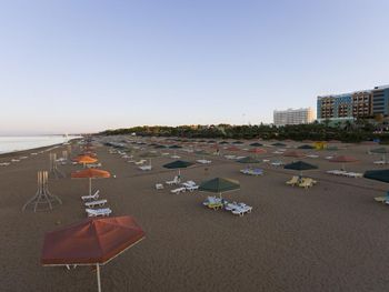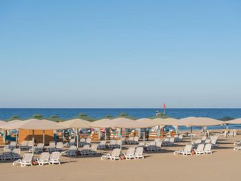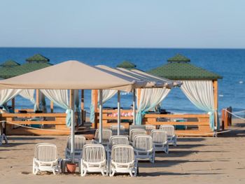 Пляж грязный, в песке полно окурков фантиков, убирают только видимый крупный мусор.