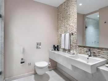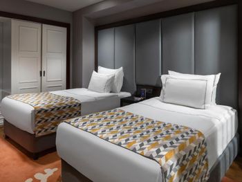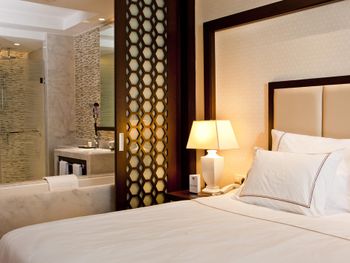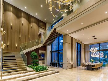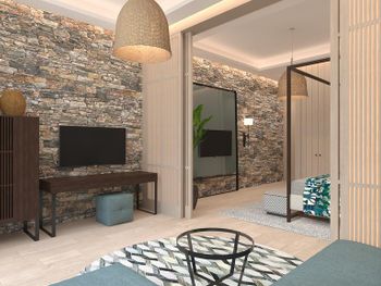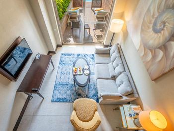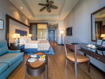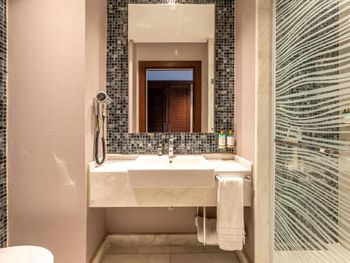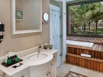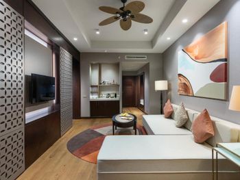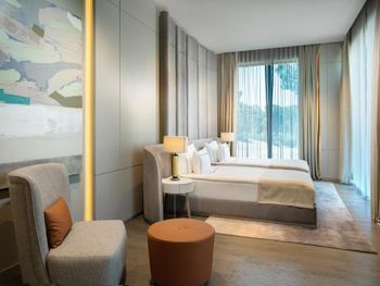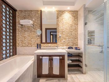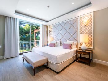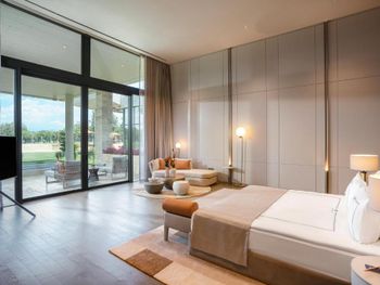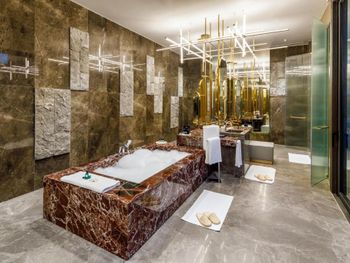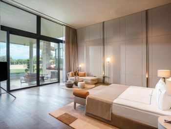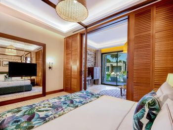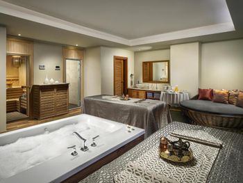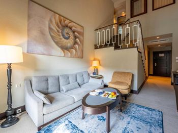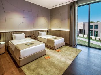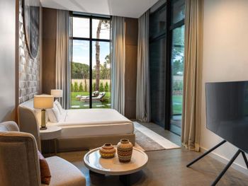 На фото и в отзывах все прекрасно, в реальности далеко не все так радужно. У нас был двухуровневый номер с выходом к бассейну. Очень холодный, мрачный, с кривыми стенами грязно-бежевого цвета (покрашено дешево, как здания на улице обычно красят, что задев,поцарапаешься), кучей замазанных мест по всему номеру, со скрипучей лестницей, с очень плохой вукоизоляцией. Доп.места просто позорные диваны-раскладушки, спать на которых -мучение. Подушки и одеяла очень неприятные. Халаты такие старые и размерный ряд ограничен парой размеров, детям и крупным людям от XL уже точно придется везти халаты с собой. Полотенца хорошие. Кнопки на телефоне ни разу не мылись, фен еле дует. Все нужно было просить, чайные чашки, кофе,воду, нас в номере было 6 человек, чашек 2 чайные, 2 кофейные, потом еще 2 принесли, посуда разная.В номере уборка зависит от человека, одна женщина убирала хорошо, вторая девочка - плохо.  В-общем, любителям эстетики категорически не рекомендую.  Во внутреннем бассейне в спа зоне запах хлорки просто убийственный, по бортикам постоянно какой-то  мусор лежал. Специально всю неделю следила за лежащей резинкой для волос, так и не убрали. Цвет стен просто ужасный коричневый и заляпан (или специально замазан) белой краской.Бассейны с острыми углами, часто отколота плитка. Еда достаточно хорошая, но не все вкусно, а капучино похоже на какую-то бурду. Посуда как в столовых. Причем room service тоже далек от хорошего. Приносят все на подносе, посуда такая же как в буфете. При том, что можно было бы купить раскладные столы на колесиках и шкафы,чтобы в них еда оставалась горячей, как это в хороших отелях и делают. Ну вот никак не дам 5 звезд отелю. За меньшую сумму можно отдохнуть в гораздо более приятных условиях и лучшим обслуживанием. До сих пор жаль, что потратили время и получили такой ужасный отдых. Еще много негативных моментов, но думаю и этого достаточно чтобы увидеть всю "прелесть" отеля.