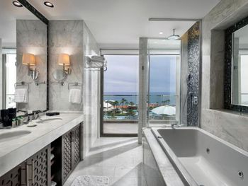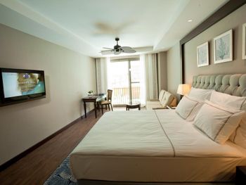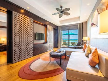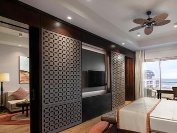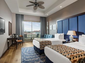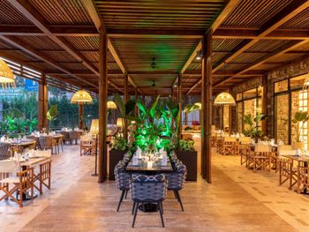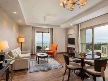 Заселение длительное, хоть мы и прибыли в отель в 14-30 Бесплатные мясной и рыбный не отдельные рестораны, а дневное кафе перед пляжем, к вечеру оборудованное под ресторан с бедным меню (особенно мясной). Сходили раз и больше не стали. Особая беда в отеле-номера(( Мы жили в семейном номере с собственным выходом к бассейну. Номера и коридоры требуют ремонта уже давно. Абсолютно не стоят заплаченных денег- выглядят как 3-4 звезды, вторая спальня в номере фактически без окна, крошечная-не равноценная, почти нет розеток. Освещение в комнатах и ванных-его почти НЕТ! Много раз бывали в темных отелях, но это просто очень-очень темно(( Ребята, так нельзя. Обслуживание в номерах вообще отдельная песня. Рум-сервис (платный) не дождешься, мини-бар заполняют плохо, мало и не всегда (ждали 4 часа) Горничные -тоже проблема- Нас 4 чел в 120 -метровом номере, халатов-2, тапочки-2-3 пары, стаканы вообще никогда не кладут сколько надо. И так постоянно. Еще добавлю, что несмотря на мощные кондиционеры и смену белья, в номере очень сильная влажность аж простыни сырые.