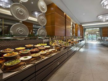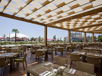 В обслуживание «все включено» входит ежедневный завтрак, обед и ужин. В 5 ресторанах с обслуживанием по меню подают разнообразные изысканные блюда традиционной турецкой и интернациональной кухни. В барах отеля можно заказать алкогольные и безалкогольные напитки.