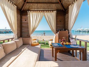 Красивый турецкий отель, достаточно разнообразное питание в ресторане, много посадочных мест внутри и на улице, зона для взрослых без детей, хороший песчаный пляж, много лежаков, можно взять платные пляжные домики. Хорошая сауна, хамам.