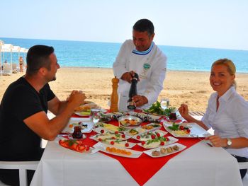 В главном ресторане сервируются блюда в формате «шведского стола». Кроме того, к услугам гостей снэк-бар на пляже и кафе, где пекут гёзлеме (турецкие блинчики), у бассейна. В ресторане с обслуживанием по меню готовят морепродукты.
