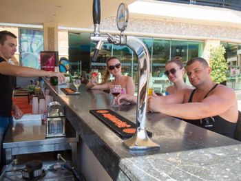1)Анематорам особенно большое спасибо,они умнички вылаживаються на все 100%.(У нас сын за 8 дней не открыл ноутбук)Зарядка,водная аэробика,волейбол,дарц...и т.д.Дескотеки,караоке,конкурсы,я выиграла массаж,!!Массаж супер,массажист на своём месте.2)Номер, чисты,просторный,всё необходимое есть,уборка каждый день.3) Пляж у отеля свой пройти7минут пешком,лежаков всем хватает,есть бар на пляже,вода,кофе,чай,бесплатно,за перекус нужно платить. 4) Интернет.Это катастрофа,платный сутки 2 евро,тянет плохо,и раздать кому-то по комнате нельзя,только на одно устройство,короче катастрофа. 5) Питание,выбор не большой,но всё вкусное свежее,повар на улице всегда делает на мангале какие-то вкучняшки,шашлык, люляки баб,рыба,и т д. .голодные не останетесь.РЕКОМЕНДУЮ ЭТОТ ОТЕЛЬ, ЦЕНА И КАЧЕСТВО,СООТВЕЦТВУЮТ.