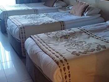 По приезду мы узнали ,что бассейн не работает , не работает ресторан ,вместо завтрака шведский стол как было заявлено ,еле выпросили кусок колбасы и сыра, для детей ничего нет ,номер не отапливается , вместо каши принесли сырые хлопья залитые холодным молоком , вокруг бегали стаи кошек , на хлебе попались кошачьи волосы , хотели обмануть со сдачей ,которую обещали вернуть утром , еле насобирали половину ,пол в номере ледяной ,лейка душа сломана , шел кипяток ,не возможно было включить холодную воду , вообще новогоднее настроение было испорченно ,персонал не реагировал на просьбы ,даже кофе утром не дают ,только заварку