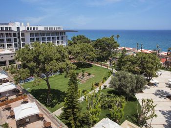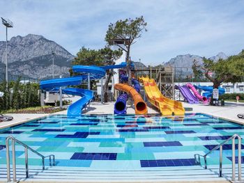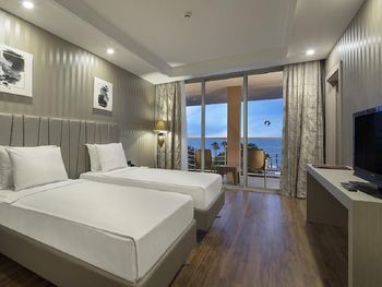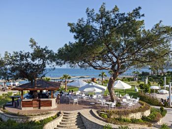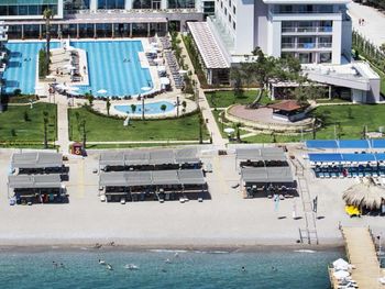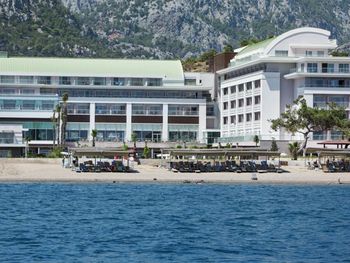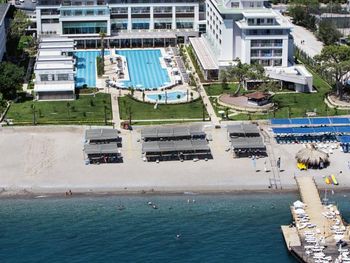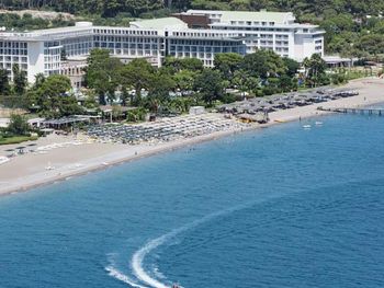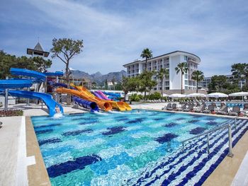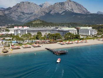 На пляже популярны различные водные виды спорта, а также пляжный волейбол. В отеле Kilikya имеются теннисный корт и баскетбольная площадка, освещаемые в вечернее время. В аквапарке сооружены 3 горки и детская игровая площадка.Расстояние, указанное в описании, рассчитано с помощью © OpenStreetMap