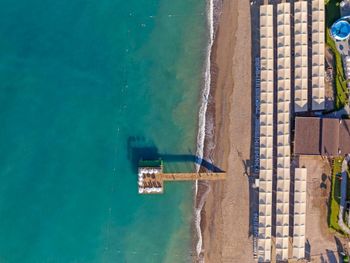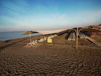 Пляж… типо песок но с камушками) За павильоны с сеточкой надо платить отдельно 100 евро в день. Работает с 9:00 до 18:00 Оттуда не виден закат, к сожалению