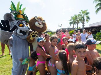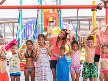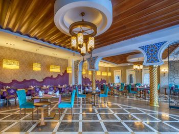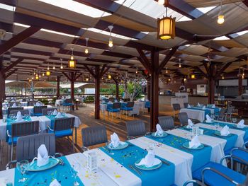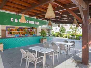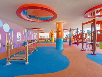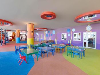 Маленькая территория для такого количества проживающих, безобразная анимация, ориентированность на туристов из мусульманских стран , переполненность ресторана ( в очереди нужно стоять за каждым блюдом, сесть некуда). Грязные лежаки, плохое качество предлагаемых в барах напитков( попытки заменить все дешевым "аналогом") , отсутствие приемлемого питания для детей ,порошковые соки и т.д.