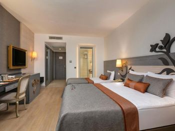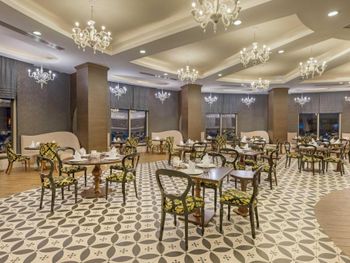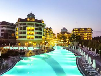 Расстояние от курортного спа-отеля Kirman Belazur до аэропорта Анталья составляет 33 км, а до амфитеатра Аспендос — 12 км.