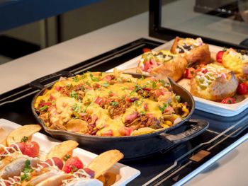 Понравилось- питание. Но тарелки в черных разводах и царапинах от вилок надо заменить. И кофе отвратительный из кофемашины.