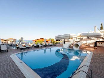 У отеля нет своей территории, только внутренний двор с бассейнами. Пляж находится очень близко, но, все равно, до него идти минут пять (хотя это нельзя назвать недостатком). Специфический контингент - туристы, отдыхающие по путевке. По вечерам до 23 часов во дворе идет шумная шоу-программа.