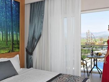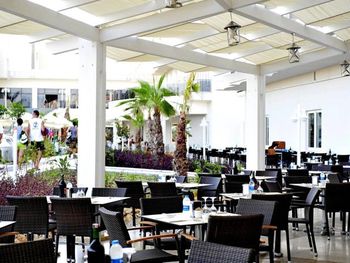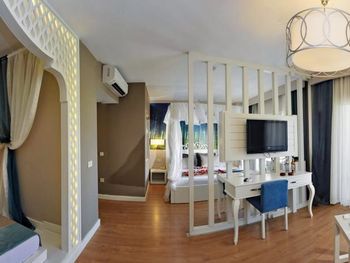 Шум от дискотеки до 2 часов ночи. Отсутствие инфраструктуры вокруг отеля. Плохой пляж. Заявленные хамам и сауна работают в непонятном режиме: в сауне сыро и температура около 60 гр., в парной хамам температура около 40 гр. как и должно быть, но влажность не 100 процентная., в разогревочной камни прогреваются не равномерно. Огромное количество соотечественников с голодными глазами в столовой, накладывающих огромное количество еды и не съедающих даже половину добытого. Плохое вино что красное, что белое, что розовое. Его не бодяжат, оно изначально такое.