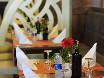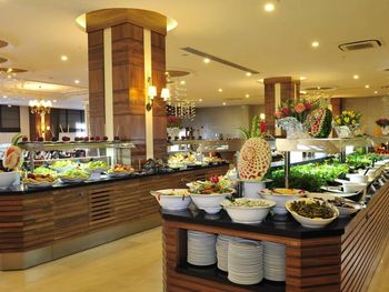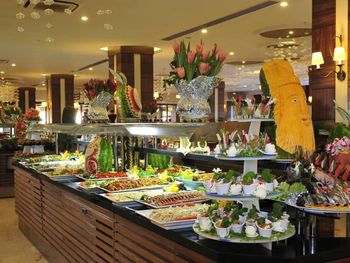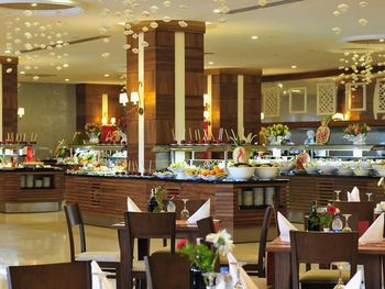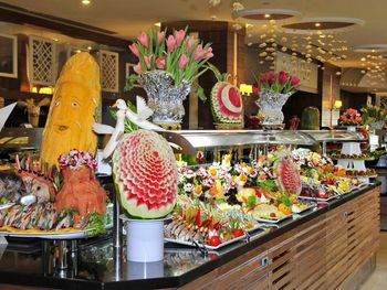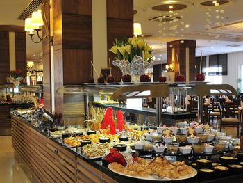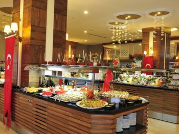 Очень вкусная и разнообразная еда; курица, рыба, большое количество салатов и тушеных овощей, огромное количество восточных сладостей. Фрукты: яблоки, арбузы, сливы, персики, виноград. Хорошее пиво и ужасное вино.