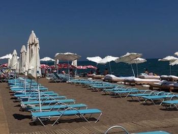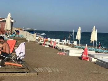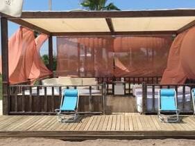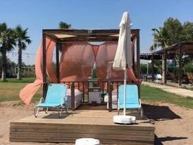 По расписанию ходит бесплатная маршрутка на пляж L\'arena Beach. Для посетителей отеля вход и размещение на шезлонгах под зонтиками бесплатные. Но шезлонги очень сомнительного качества, нужно прям поискать себе нормальное место