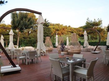 На территории отеля есть классная терраса и вода, чай, кофе в свободном доступе. Питание вкусное, по типу шведского стола.