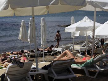Нам очень понравилось расположение отеля. Рядом расположены руины античного города, утром, когда было не жарко, можно было час-полтора бродить, осматривая их, а потом купаться. Отель расположен прямо на пляже, лежаки всегда были, если нет, то сотрудник отеля, найдет их вам. Мне очень понравилось, что можно прекрасно поплавать, никто не мешает, никто не запрещает, и буйки расположены далеко от берега и ближайшие веревки от лодочной станции находятся на другой стороне бухты, туда и обратно можно проплыть больше километра. На другой стороне бухты, куда я конечно доплыла, пляж каждого отеля отгорожен веревкой, народу в море очень много, и тут я сразу оценила, как мне повезло.