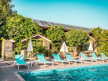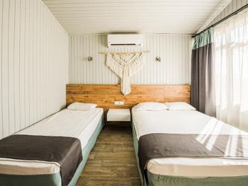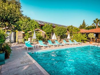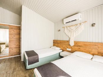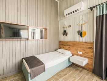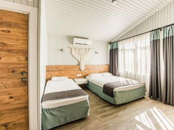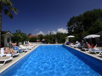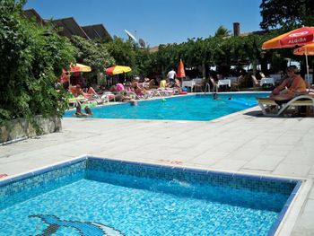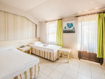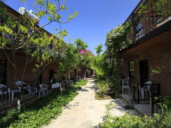 Сам отель в таком античном стиле, маленькие двухэтажные дома близко расположенные друг другу где то 2 -3 м. 21 номер кажется всего в отеле.Есть однлэтажные домики прям у бассейна и по дороге в ресторан.Наш был ближе к пляжу.В этом же отеле магазин обуви.Сыну купила кроссовки,такие же в центре дороже стоят,а по качеству те же.Хозяин магазина,он же один из хозяев отеля делает скидку 👌 До пляжа 30 секунд.Никакой дороги перехолить не надо.Дети ходили самостоятельно на пляж, тропинка где ходят туристы вдоль набережной.Моим детям(17,12,10,3) лет.Песочный пляж с постепенным углублением.Дети купались без присмотра.Что меня радавало.Не нужно было постоянно быть в напряжении. Вода чистая. Много кафешек вдоль набережной.На пляже есть лежаки отеля. С ресторана отеля вид на руины и античный театр.Отель окно в историю.Через дорогу от ресторана все достопримечательности.Туристы ходят толпами.Сама приехала сюда по отзыву. Для меня был важен песочный пляж с постепенным не глубоким входом в море.Т.к у меня 4- ро детей,старшие умеют плавать но все равно хотелось спокойствия.Я ведь на отлыхе. Кормят хорошо разнообразно и зелень и сладкое и мясо и рыба и фрукты. До центра где также много истории 10-15 мин пешком.Мы холили с коляской.Кстати очень тихий район дальше по набережной шум,дискотеки,шоу программы прямо другой мир.А у нас тихо просто умиротворение. Бассейн нормальный не супер огромный достаточный.Вокруг отля растут гранаты у ресторана.У бассейна хурма, я ее ела, также растет лайм. За рестораном магазин одежды. По дороге к морю проходишь через магазин и кафе,которе выходит на набережную.Так что далеко ходить не надо.Дети покупали напитки,морлженое и т.д можно сказать напротив их комнаты.