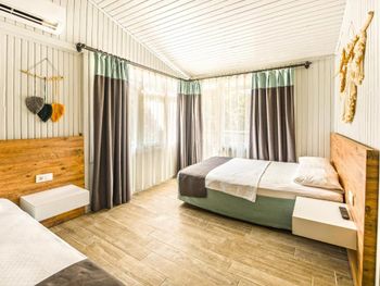 Расположение просто идеальное. Завтрак разнообразный. Вокруг всё зелено. Подходит для людей активного отдыха.