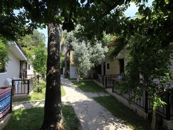 Расположение идеальное, в самом центре Сиде. Собственный пляж с лежаками. Отель скорее не отель, а много дачных домиков, для любителей отлично подойдёт