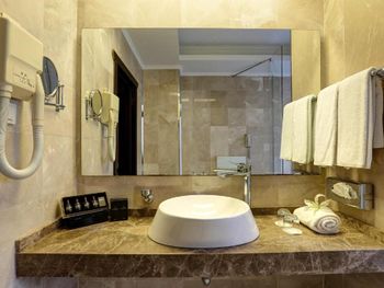 К 10 вечера пришел молодой человек с одеялом и предложил уложить дочку на полу. У меня такое предложение точно не ассоциируется с отелем 5 звезд. На мой отказ укладывать дочку (9 месяцев) на полу долго не могли найти альтернативное решение. При этом говорили, что в момент заселения кроватки уже не было. Тогда непонятно, почему обманывали и говорили, что вот-вот принесут. В этоге соединили две кровати, я с дочкой в это время ждала в коридоре. Напомню, что была уже ночь и я в отель приехала отдыхать, а не ждать пока решат проблему. По опыту других отелей знаю, что подобные проблемы устраняются гораздо быстрей. Обслуживание совершенно не соответствует уровню 5 звезд. Разочарована.