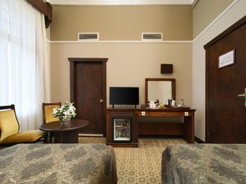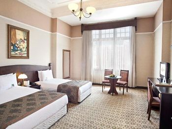 Красивый отель. Потасканный, но мне нравится/нравилось тут останавливаться. Номера большие, высокие потолки. Красивый хол, красивый вид на завтраке и в ресторане.