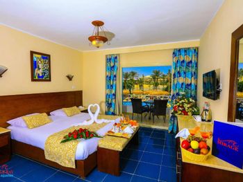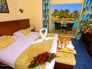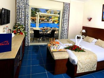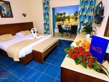 Светлые номера курортного отеля Mirage Bay оформлены в современном стиле, в духе древнего Египта. Все они оснащены кондиционером, а некоторые выходят на балкон или террасу. В каждом номере установлен телевизор, телефон и сейф.