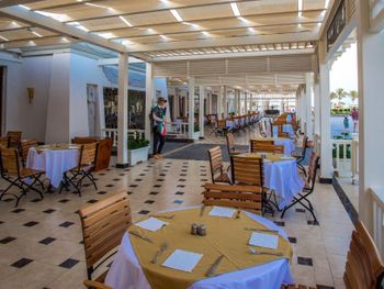 Я очень много где бывал, но редко где в Египте встречаются рестораны рядом с морем. А в этом отеле завтрак и ужин на открытой террасе был чудесным (места ограничены, поэтому лучше без опозданий). Персонал ресторана оперативно реагировал на предпочтения туристов: очередь за курицей - на следующий день четыре выкладки с курицей. Самое главное вести себя так как будто среди официантов хозяин отеля: на равных и тогда все будет супер! Ну и конечно не забывать про чаевые: нужна уборка каждый