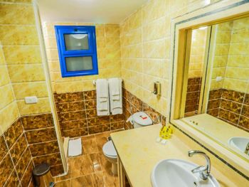 В номере не сливается вода в душе,старое постельное белье, бассейн закрывается очень рано в 16.00, еда не очень разнообразна. Кровать скрипела от малейшего движения, дверь закрывается не плотно и можно открыть, поддев замок пластиковой картой. Ночью было очень шумно, кричали и бегали студентки из Египта и не реагировали на замечания.