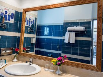Очень старые и грязные номера. Отель давно требует реставрации!!!! Канализация очень воняет. И не только на улице! Особенно по ночам в номере сильно воняло. Спасались включенной вентиляцией в туалете с включенным светом и закрытой дверью, иначе спать невозможно. Мебель старая, стены облущены. Сантехника ржавая, душ очень грязный. Ещё из минусов это твердые подушки.