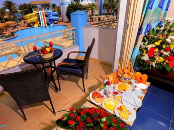 Я очень много где бывал, но редко где в Египте встречаются рестораны рядом с морем. А в этом отеле завтрак и ужин на открытой террасе был чудесным (места ограничены, поэтому лучше без опозданий). Персонал ресторана оперативно реагировал на предпочтения туристов: очередь за курицей - на следующий день четыре выкладки с курицей. Самое главное вести себя так как будто среди официантов хозяин отеля: на равных и тогда все будет супер! Ну и конечно не забывать про чаевые: нужна уборка каждый