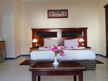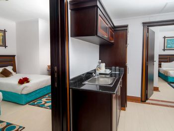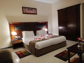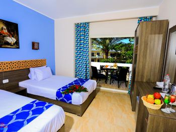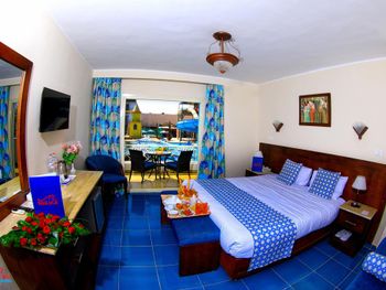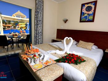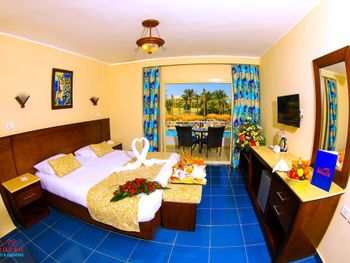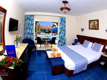 Светлые номера курортного отеля Mirage Bay оформлены в современном стиле, в духе древнего Египта. Все они оснащены кондиционером, а некоторые выходят на балкон или террасу. В каждом номере установлен телевизор, телефон и сейф.
