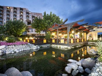 Понравится в этом отеле может разве что необычная планировка, да приветливый персонал (лобби, раздача еды и улыбчивые горничные). Ах да, ещё приветственный шоколад, бутылка вина и пополняемый мини-бар:-) Ещё понравились лягушки, что квакали в пруду))) очень забавно, окна выходили на море и прогулочную зону, поэтому просыпались и засыпали с их песнями.