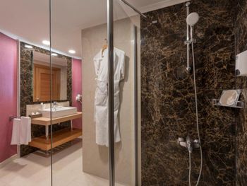 -халатов нет (пришлось звонить на ресепшн, принесли вафельный халат с поясом от махрового и махровый с поясом от другого махрового🙈, халаты худые, измученные жизнью);