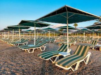 Пляж- удобный,был заход с перилами в воду и дорожка к воде из песка,хотя пряж галечный,это очень удобно. На пляже было чисто всегда,я приходила в 7:30 каждый день,мусора не было лежаки лежали ровно,за день ребята постоянно ходили и убирали