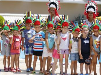 В течение всего дня ненавязчиво присутствует анимация: зарядка на пляже с утра и активности, к 12 перемещались к бассейну и там проводилась аэробика. Вечером детская анимация затем шоу и дискотека.