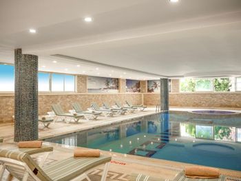 Бассейн с подогревом, но он маленький и с сильно хлорированной водой. Есть чайник в номере.