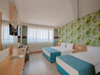 Уборку необходимо было просить, чтобы сделали. Санузлы грязные, комнаты требуют ремонта, сыпится шпаклёвка. Отель не в первой линии, на пляж нужно идти через соседний отель и переходить дорогу. Детей самостоятельно отпускать нельзя, в Турции не пропускают пешеходов. Если у официанта или повара что-то упало на пол, то без колебаний будет возвращено для потребления туристами.
