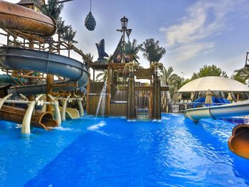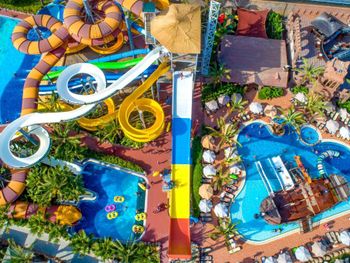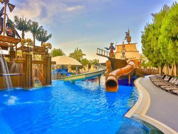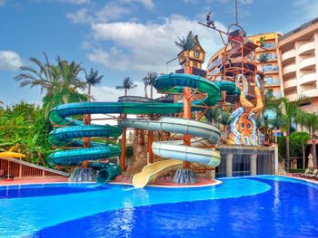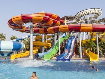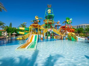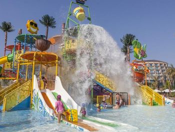 Территория развленчения (горки) достаточно хорошая. Удивлена рейтингу этого отеля. На 5звезд с ультра все включено он совершенно не тянет. Максимум 3 звезды. Отзыва высокие видимо благодаря зоне развлечения. Если ее не брать в расчет то отель ужасен.