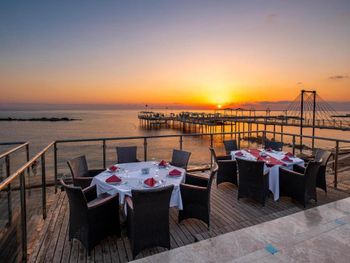 Разнообразная еда, много бассейнов , множество баров на территории , наличие пирса возле море , достаточно не плохой аквапарк