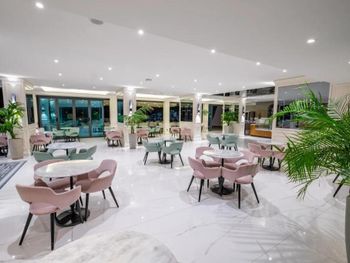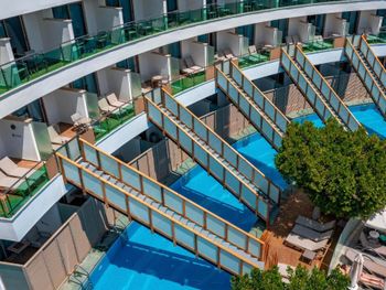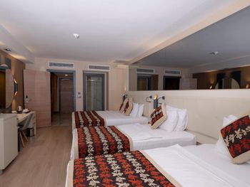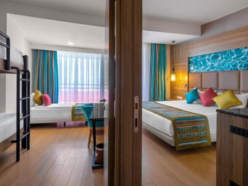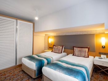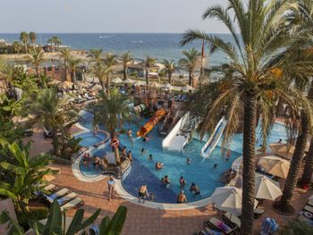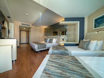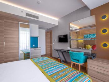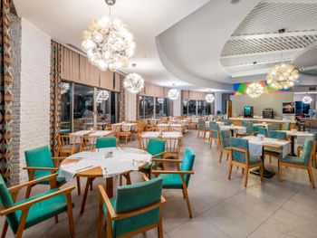 Отель требует ремонта-все облупленное, старое, зеркала все в потеках. Грязные общественные места, туалеты убирают редко, везде мокро и скользко, отель был заполнен полностью- везде толпа, как в метро в час пик, в бассейнах особенно, лежака не найти, вещи клали на пол, проходы и лестницы везде узкие, сталкиваешься с кем-то постоянно, обед и ужин в основном не особо вкусные. Персонала не хватает, нет клиентоориентированности. При нас сотрудник разбил стакан в аквапарке и ушёл, не собрав мелкие осколки. Люди босиком по ним ходили. Позвать некого было. Нашли уборщика, он посмотрел ушёл, потом позвали спасателя, тот куда-то позвонил по рации, за час так никто и не убрал, по-английски никто не понимает даже ‘Стакан’. Вечернее шоу-жутко громко музыка, ребёнок не выдерживал, хотя до этого в других отелях с удовольствием ходил. В аниматорской на улице заставляют разуваться и ходить босиком по старому ужасному ковру. В столовых посуду убирают редко, стол сложно найти, ели за грязным( после других), основной ресторан вытянутый, те столы не вокруг раздачи.
